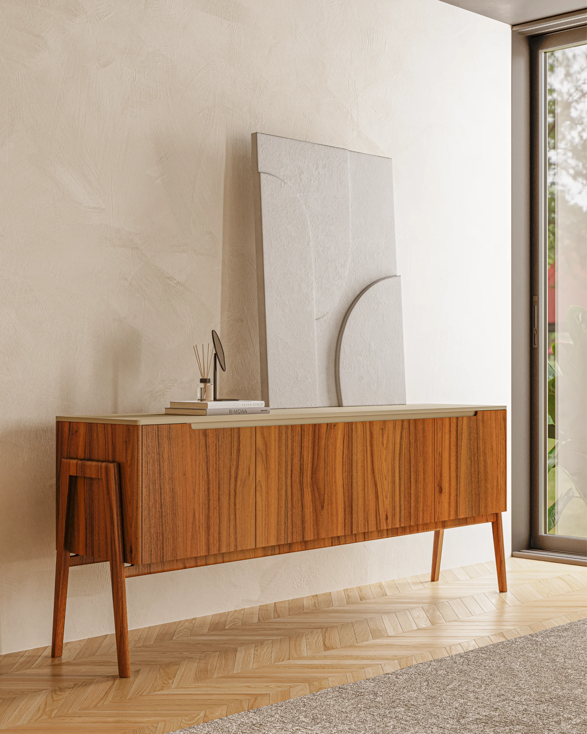 O aparador Bicca destaca-se pelo seu design leve e sofisticado, com linhas elegantes e uma silhueta marcadamente escandinava. Produzido em madeira combina com facilidade com vários ambientes. As portas lisas com sistema de abertura com puxador integrado garantem funcionalidade com estética limpa. Os pés altos e inclinados conferem leveza visual. Ideal para salas de jantar, halls de entrada ou espaços sociais que valorizam o design com alma natural.