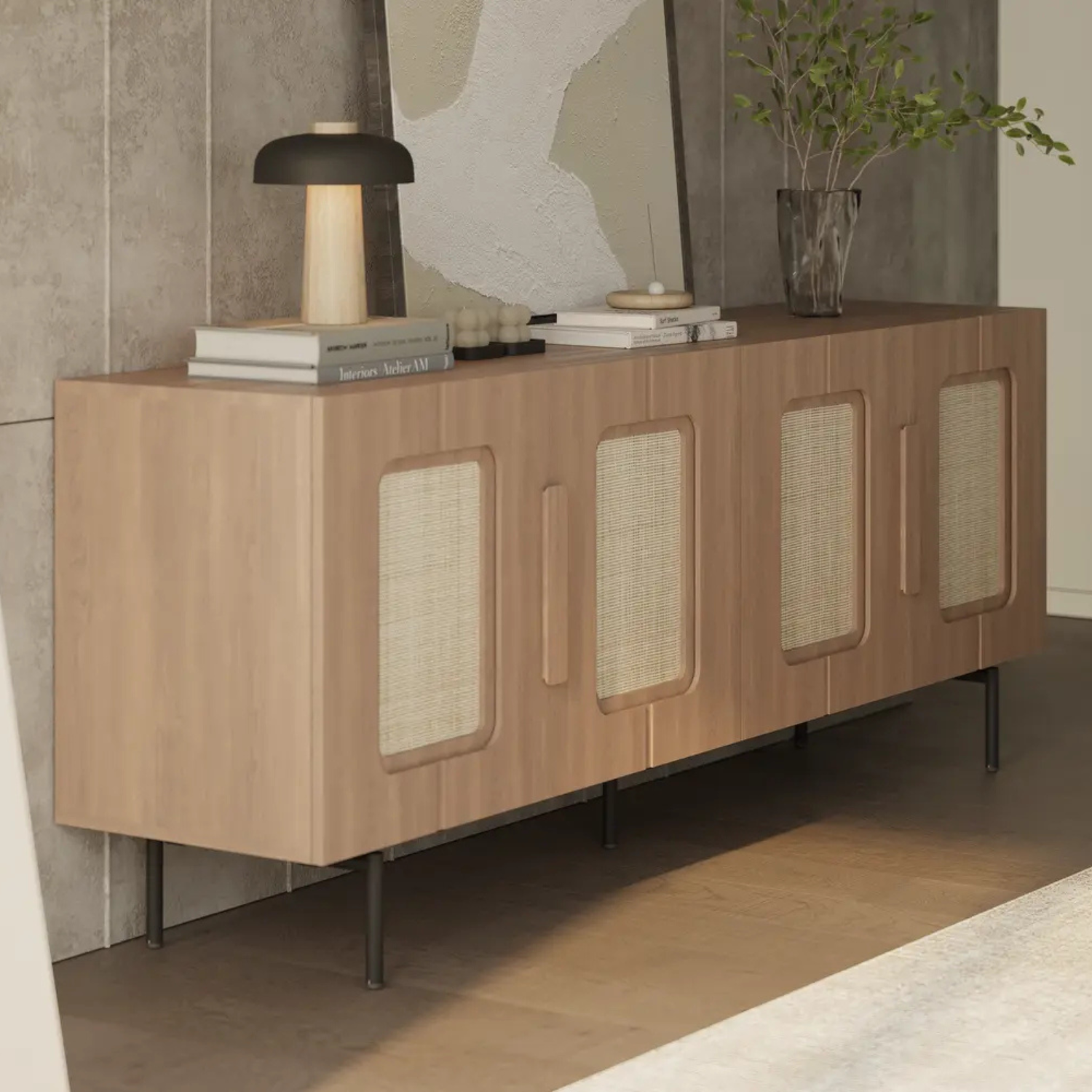O aparador Blame diferencia-se pelas suas portas em rattan. As suas linhas retas aliadas a este material torna esta peça de mobiliário no elemento de destaque de qualquer divisão.