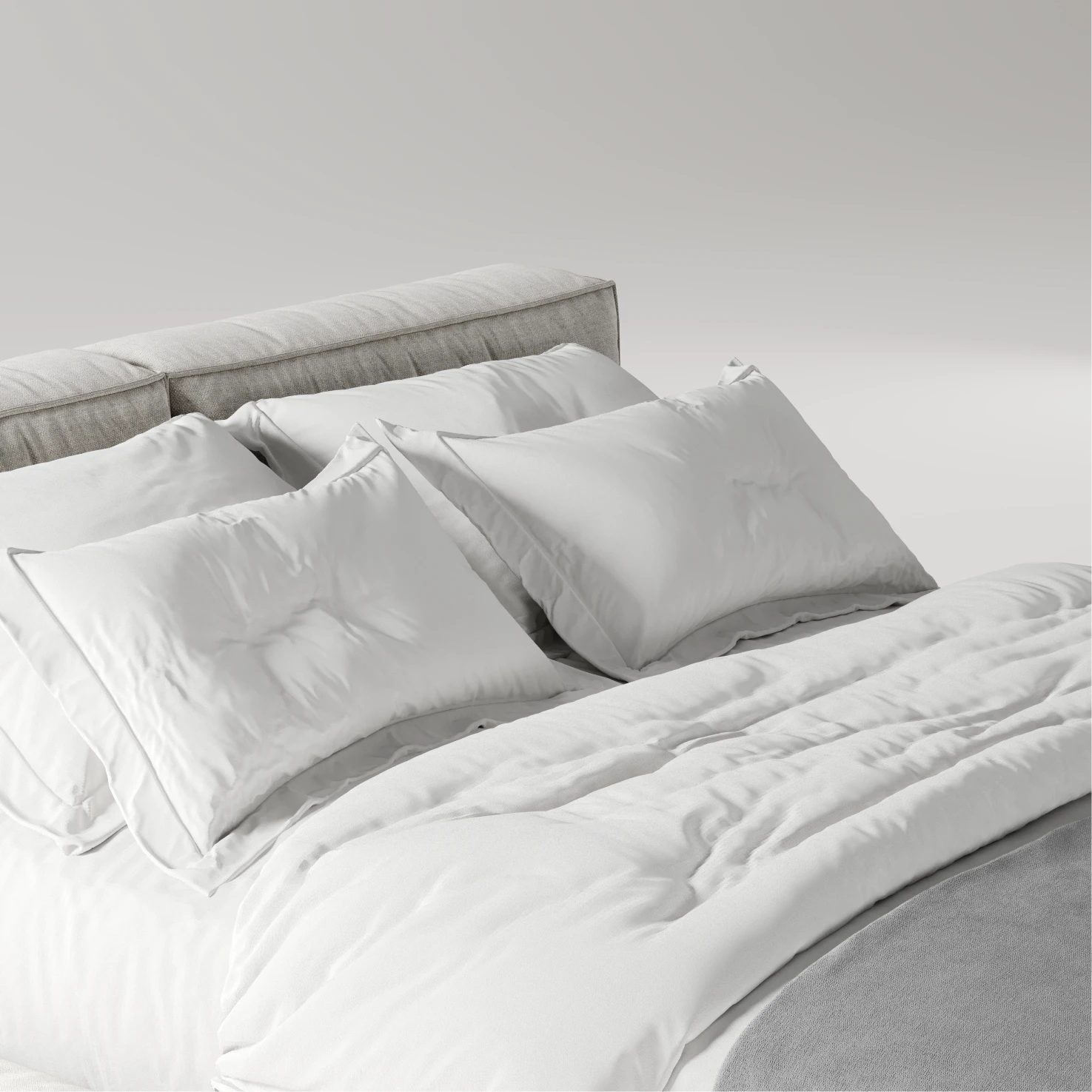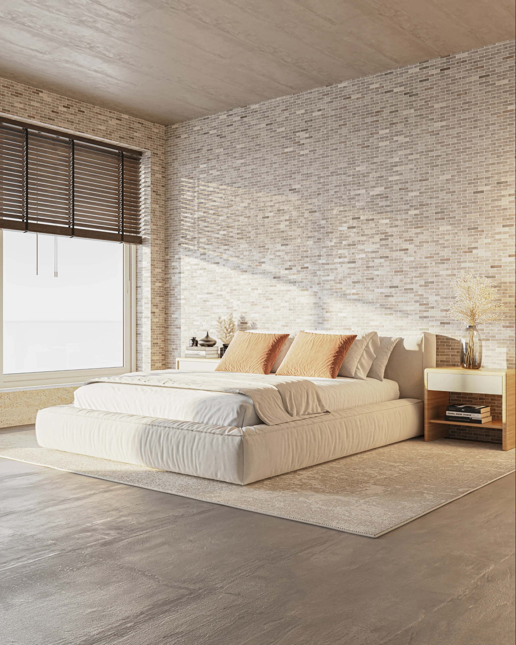 A cama Large com uma estrutura baixa e visual aconchegante promove uma sensação de acolhimento e bem-estar. O design monobloco da base cria uma estética clean e moderna, valorizando o ambiente com linhas suaves e proporções elegantes e tornando a cama versátil para combinações com diferentes estilos de decoração.