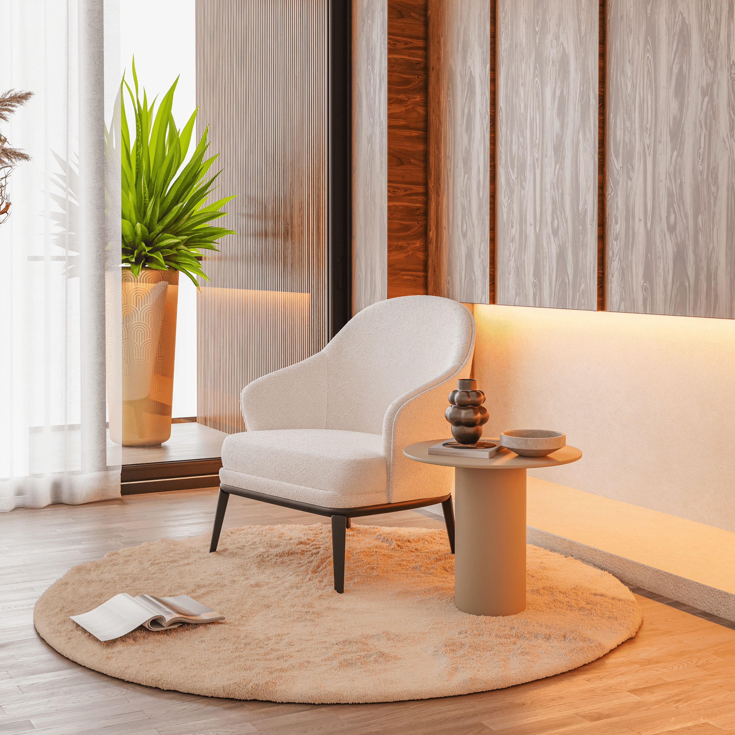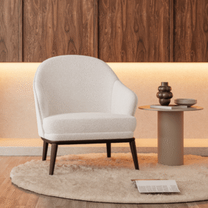 Com um design que combina conforto e elegância, esta poltrona é uma peça-chave para qualquer espaço moderno. O encosto envolvente em curva, aliado aos braços integrados, proporciona um excelente conforto, tornando-a ideal para momentos de relaxamento.